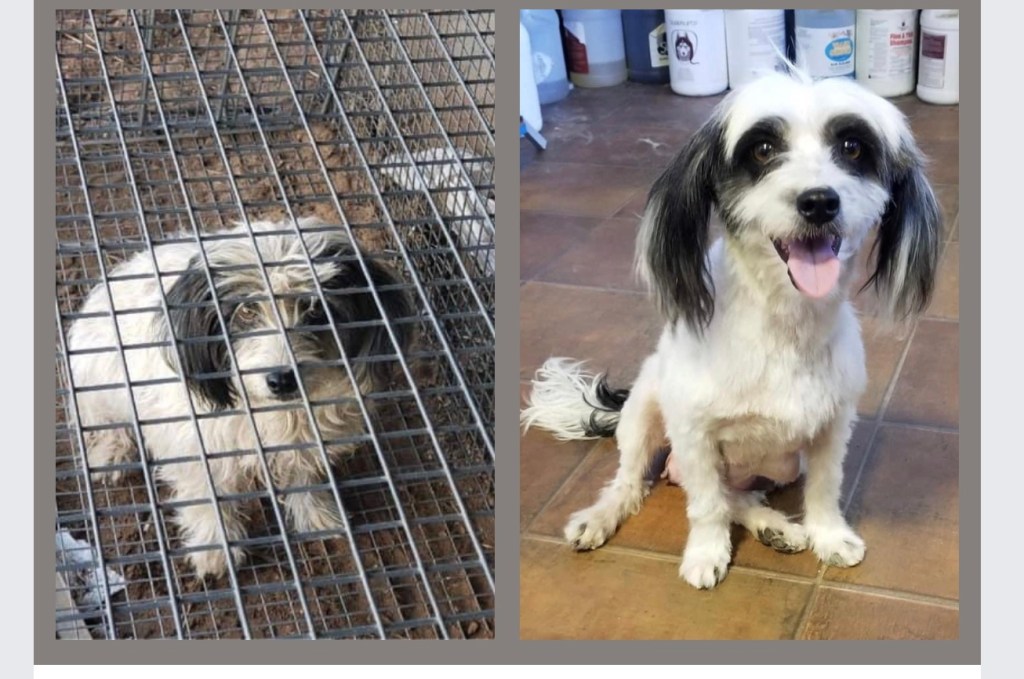 Little Tira was discovered with her mate and their four puppies, sheltering under a building. The whole family was placed in foster care, where all were able to blossom and thrive, including puppy Cannoli, below. All were soon adopted through Mountain Girl Rescue.