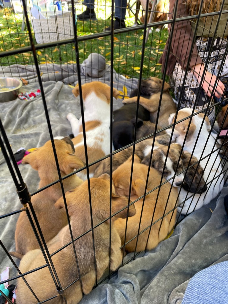 Mountain Girl Rescue was live at Barks and Brews 2021, with swag, candy, foster families, and…PUPPIES! Lots of puppies.